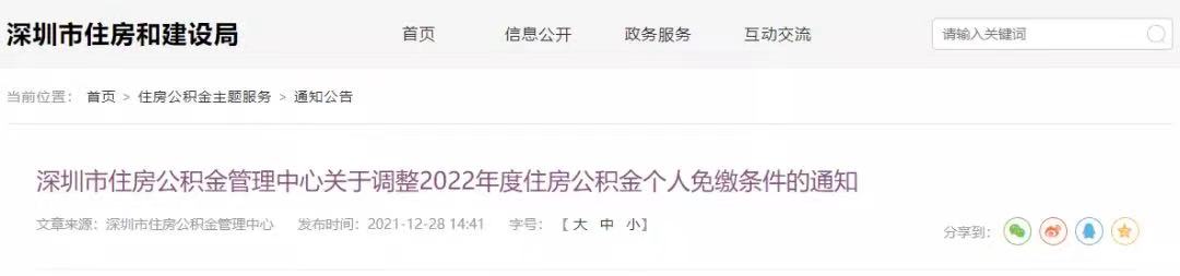 2021年底,深圳市住房公积金管理中心发布了《深圳市住房公积金管理中心关于调整2022年度住房公积金个人免缴条件的通知》