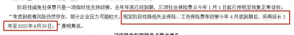 2021年虽然疫情得到了有效控制,但考虑到疫情风险仍然存在,部分企业压力可能较大,人力资源社会保障部办公厅、财政部办公厅、国家税务总局办公厅印发《关于2021年社会保险缴费有关问题的通知》,规定阶段性降低失业保险、工伤保险费率政策2021年4月底到期后,再延长1年至2022年4月30日。