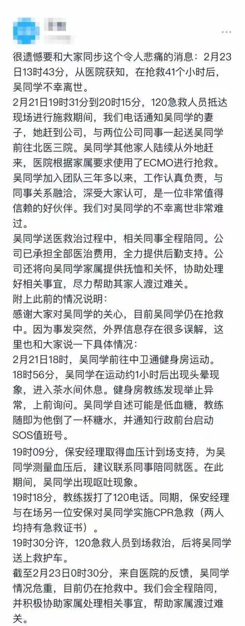 随后,字节跳动内网一则通知表示,该员工已于2月23日13时43分不幸离世。