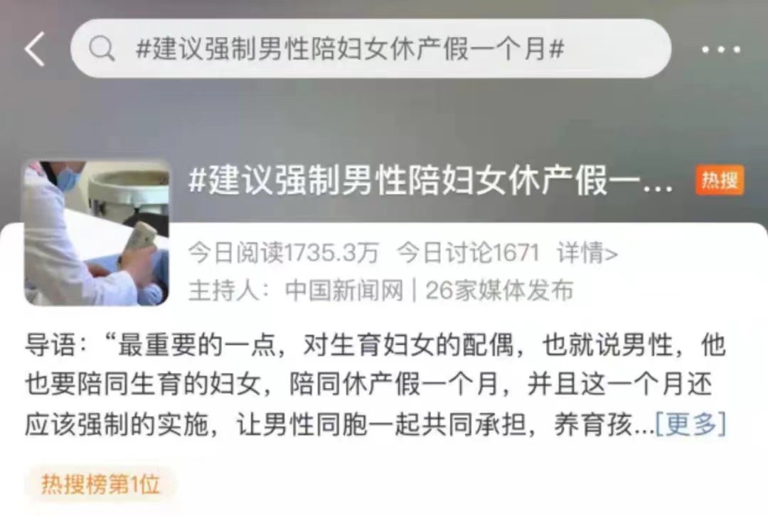 建议强制男性陪妇女休产假一个月,对此网友聊嗨了。