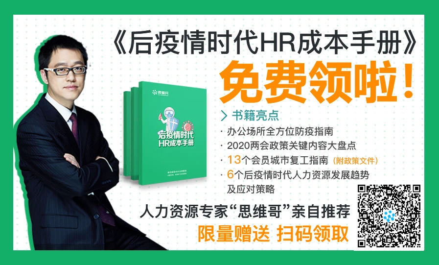 《后疫情时代HR成本手册》,内容涵盖2020年最新防疫指南,2020年最新两会关键内容大盘点,13个会员城市复工指南,6个后疫情时代人力资源发展趋势及应对策略等。