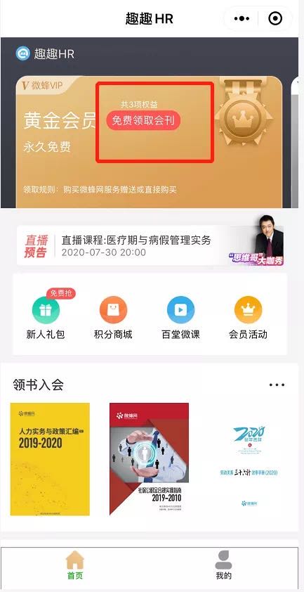 此外,小程序首页“领书入会”栏目,4本HR相关书籍免费领取!