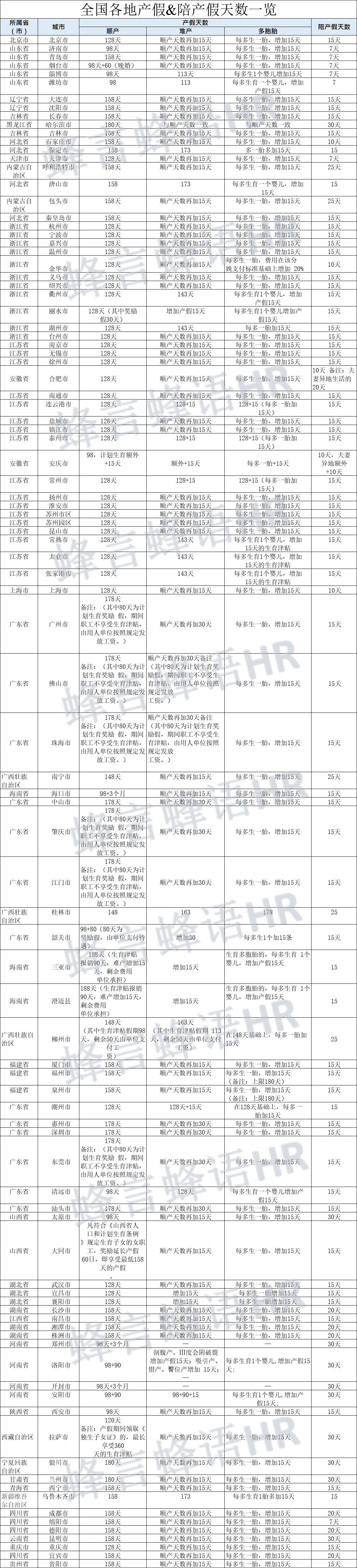 2020年全国各地产假、陪产假天数来了,还有....