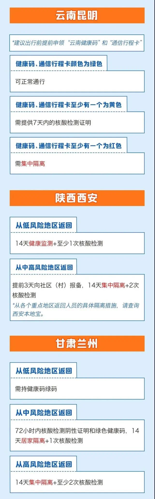 最后提醒大家:一定要关注目的地疫情变化和疫情防控政策措施变化,以及交通部门出行提示,切实做好出行安排。