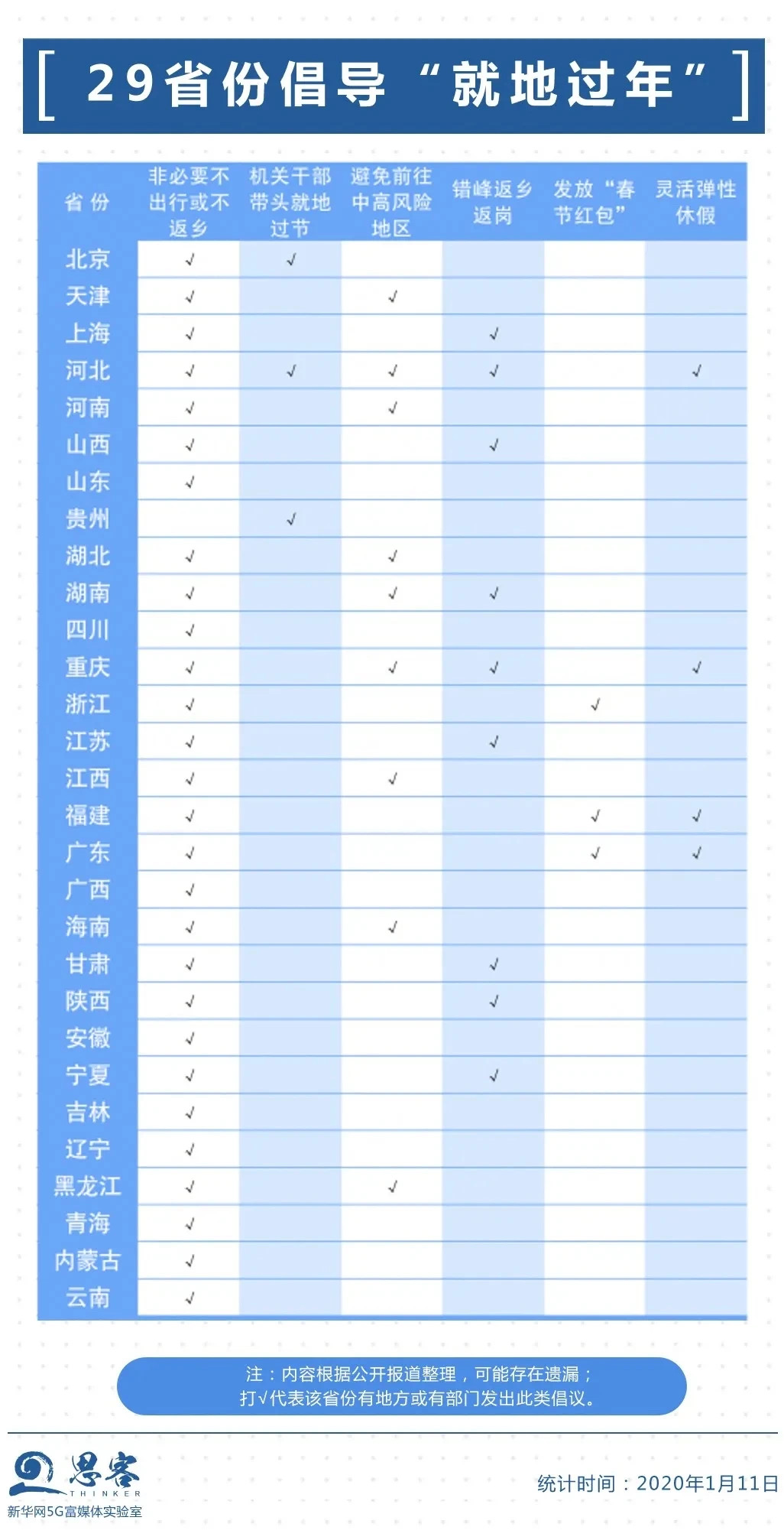近期,北京、天津、上海、河北、河南、山西、山东、贵州、湖北、湖南、四川、重庆、浙江、江西、江苏、福建、广东、广西、海南、甘肃、陕西、安徽、宁夏、吉林等29个省份,因为疫情原因,倡导“就地过年”,宴会,聚会,宴会,团拜等活动一律取消!