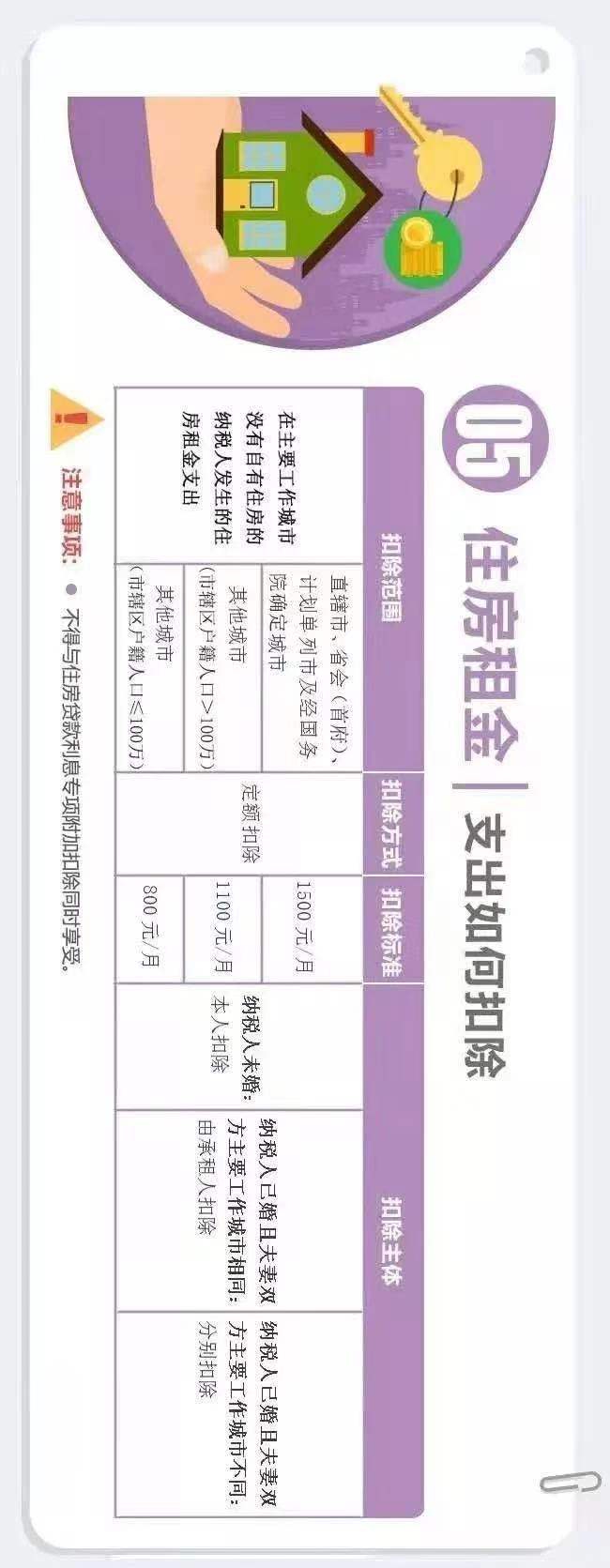 提醒五:纳税人与其配偶主要工作城市相同的,只能由一方扣除住房租金
