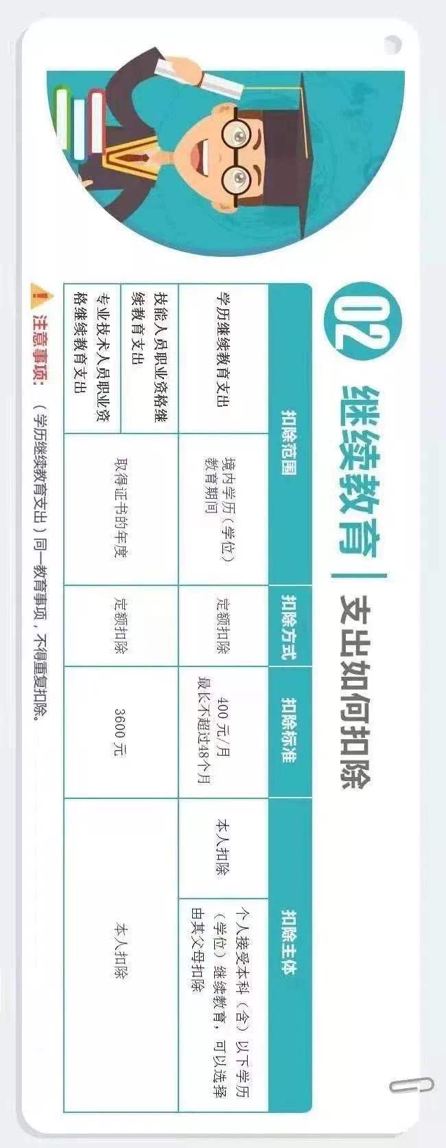 相关政策:纳税人接受技能人员职业资格继续教育、专业技术人员职业资格继续教育的支出,在取得相关证书的当年,按照3600元定额扣除。