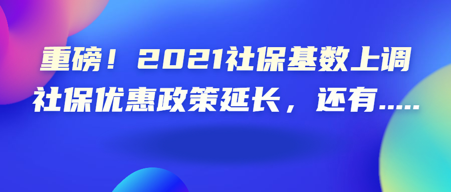 重磅!2021社保基数上调,社保优惠政策延长,还有.....
