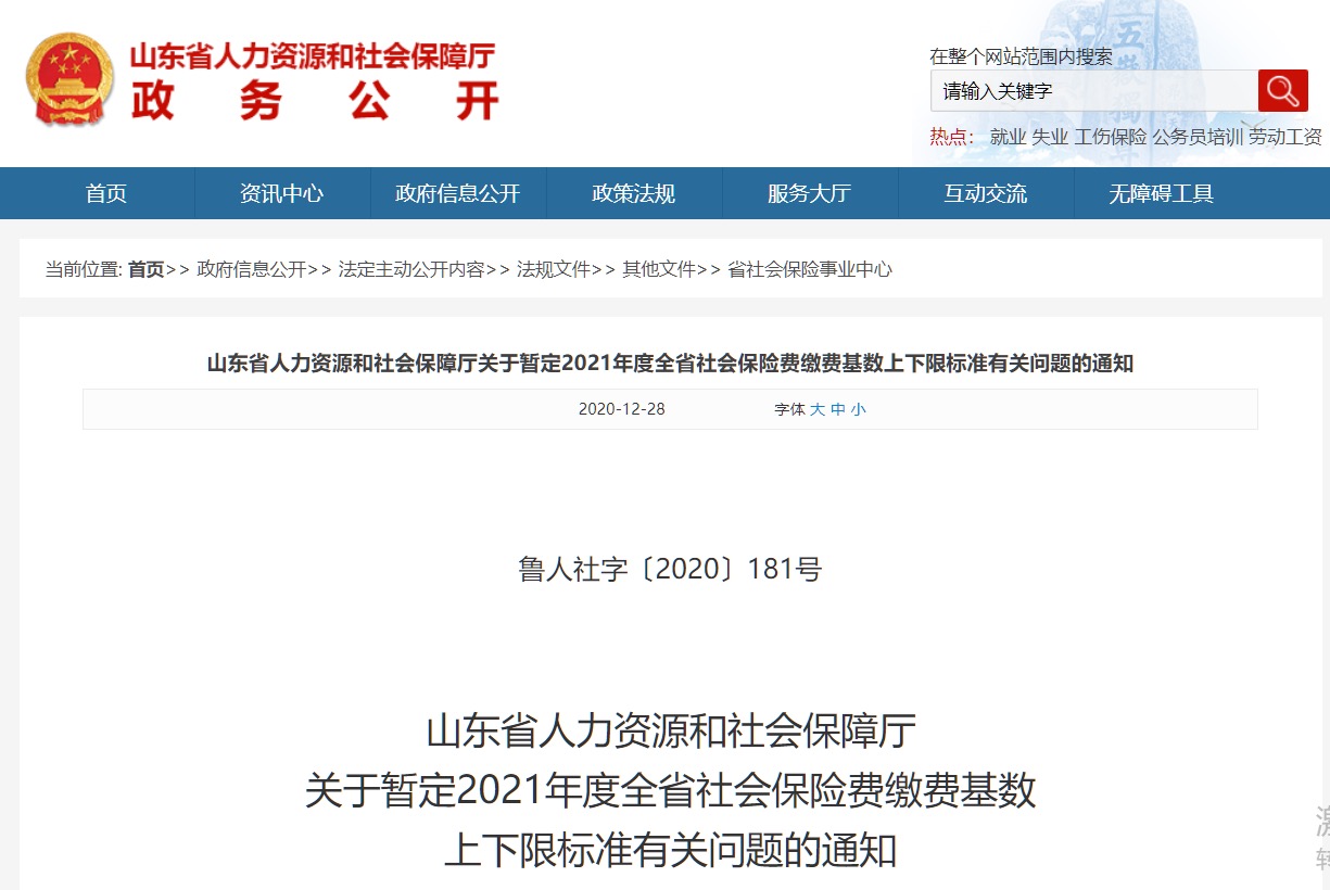 例如,山东省就率先公布了2021年的社保缴费基数: