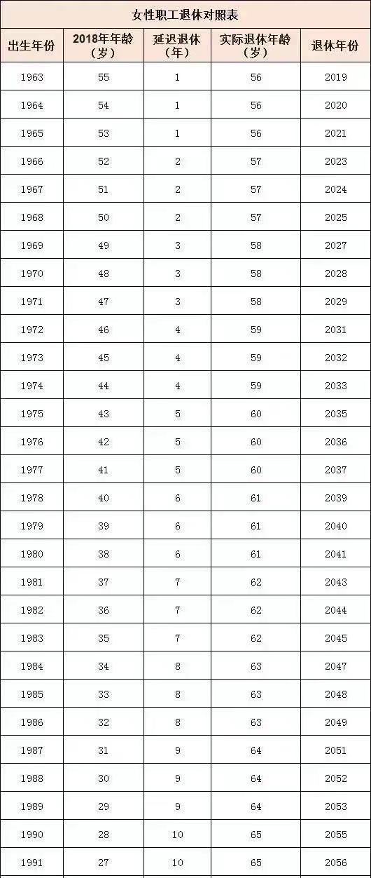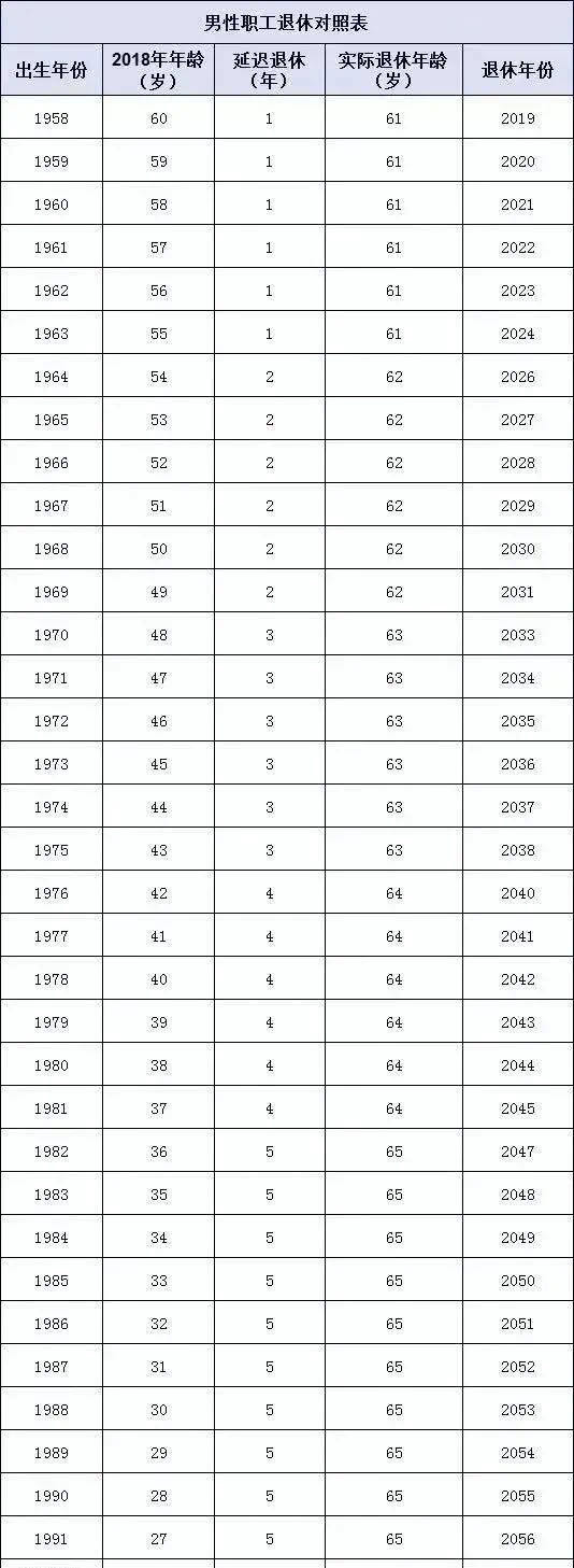 网上根据延迟退休的大体政策推测出了下面这份退休时间表,仅供大家参考。
