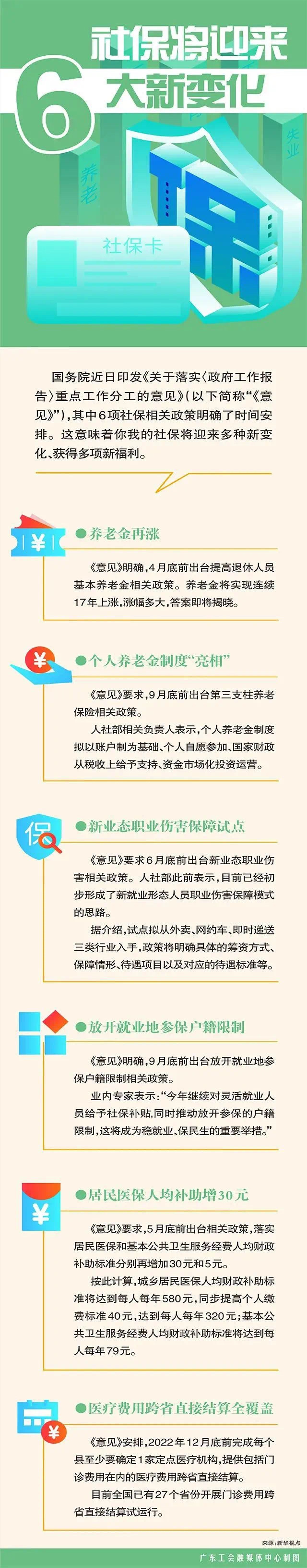 时间确定!社保将迎来6大新变化。国务院近日印发《关于落实〈政府工作报告〉重点工作分工的意见》,指明44项重点工作的分工责任及完成时限。其中,有6项社保相关政策明确了时间安排。