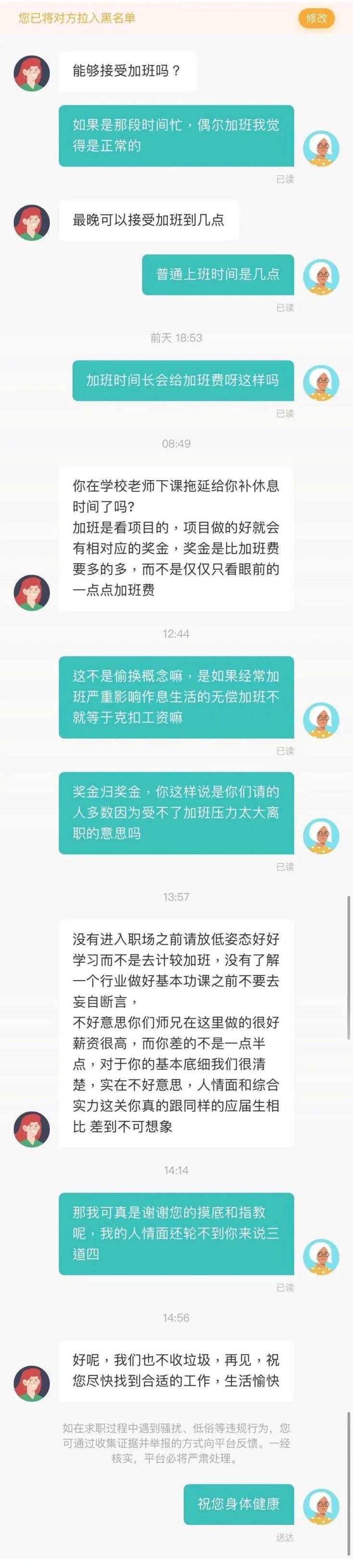 然而,看完对话,发现这个HR的情绪控制能力是存在严重问题的,不具备HR应有的素质。说话也存在一些逻辑问题。