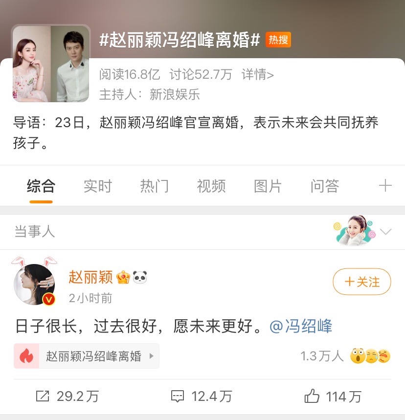 吃瓜!震惊!裂了!就在今天,赵丽颖和冯绍峰官宣离婚了!