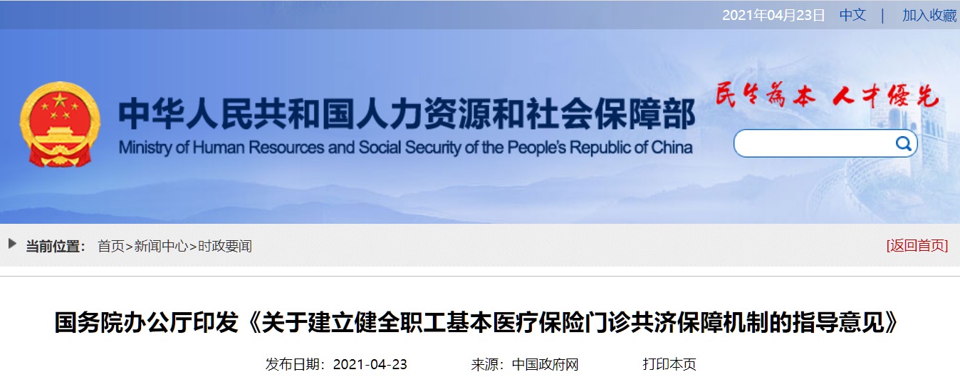 4月23日,国务院办公厅印发关于建立健全职工基本医疗保险门诊共济保障机制的指导意见。