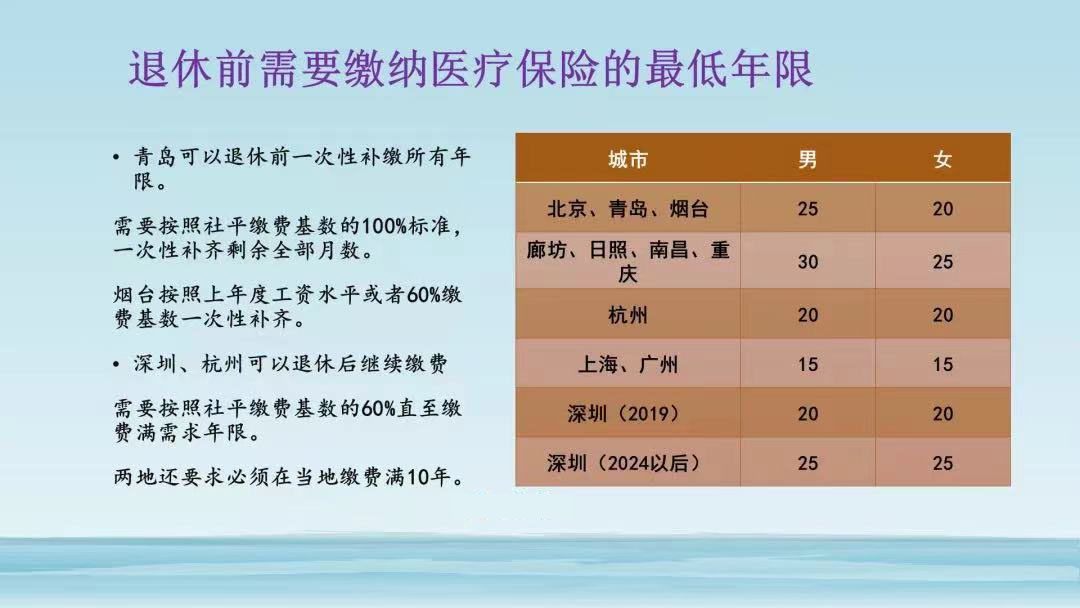 如果达不到规定年限,各地的要求确实也不一样,像杭州、深圳都是可以继续缴费。但是,像青岛市却要求一次性补齐,而且要按照100%的社平缴费基数。如果暂时拿不出这么多钱来,可以中断几年,等以后有钱了再补,相应的缴费钱数也不会改变。