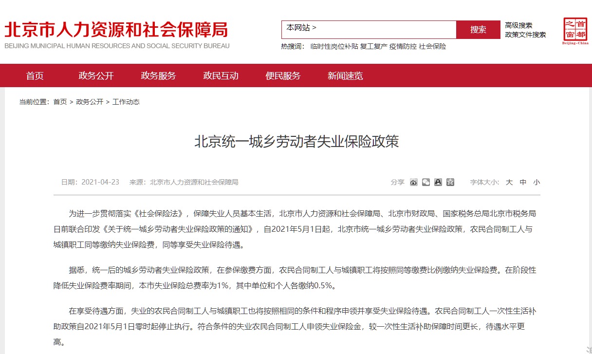 5月1日起,北京统一城乡劳动者失业保险政策,还有这些