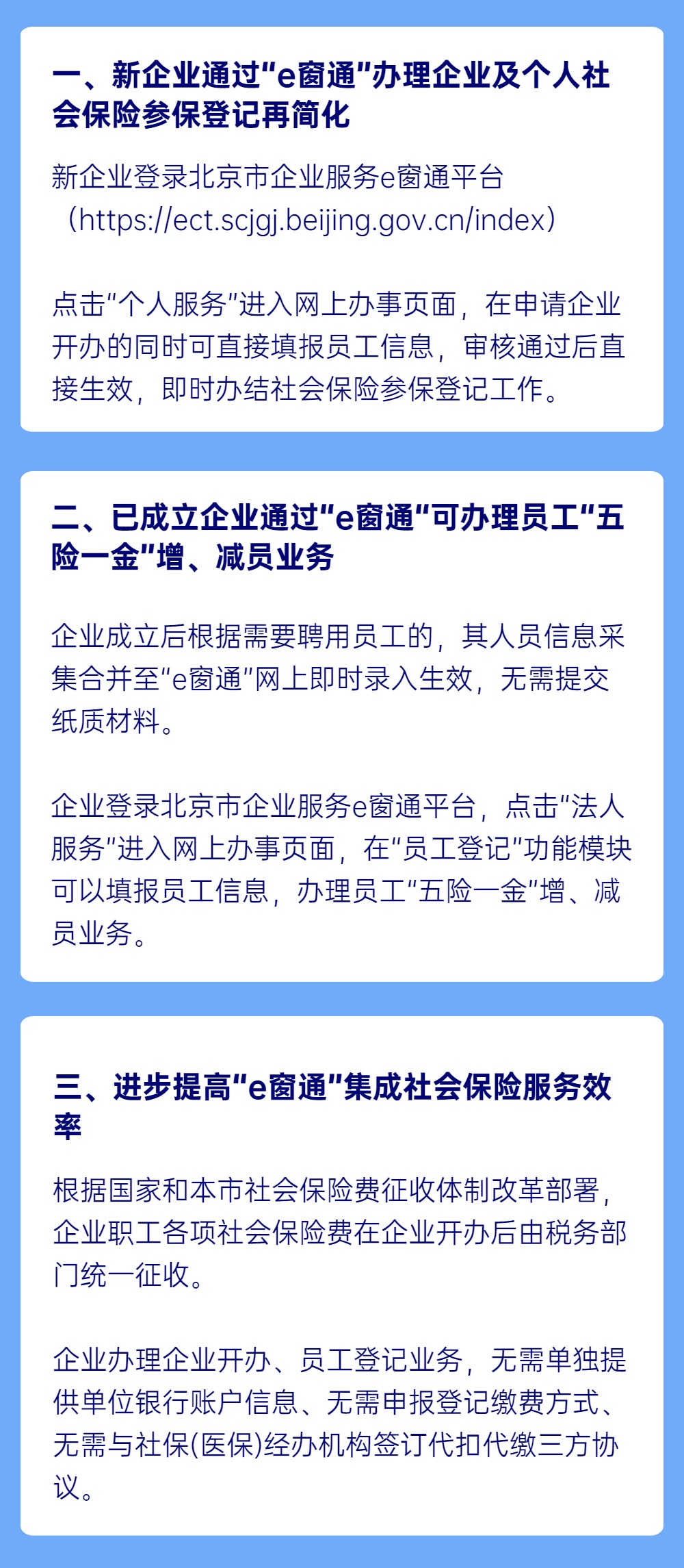 为了实现全部企业开办事项,在“e窗通”一站办理,北京市社会保险基金管理中心再次优化使用“e窗通”,办理企业及员工参保登记流程。