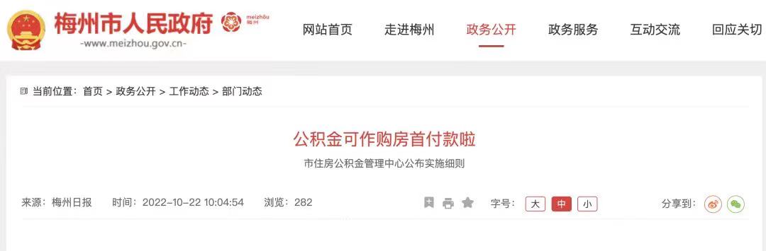 近日,广东省梅州市住房公积金管理中心发布公告称,明确即日起可提取住房公积金支付购房首付款。