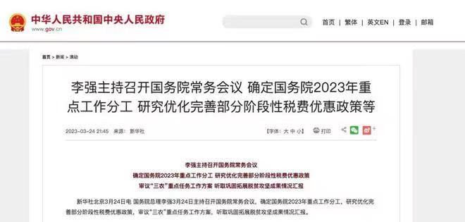 近期,国务院总理李强主持召开国务院常务会议,明确2023年延续和优化实施部分阶段性税费优惠政策。