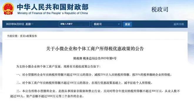 3月27日,财政部和税务总局联合发布《关于小微企业和个体工商户所得税优惠政策的公告》,明确小微企业、个体户优惠政策延长至2024年底!