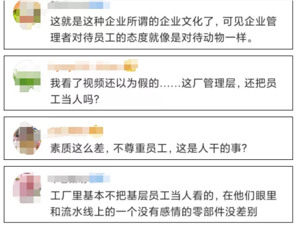 这一幕曝光后,有网友怒斥:这种行为就是在侮辱人格,这家公司在企业文化上就不尊重员工。