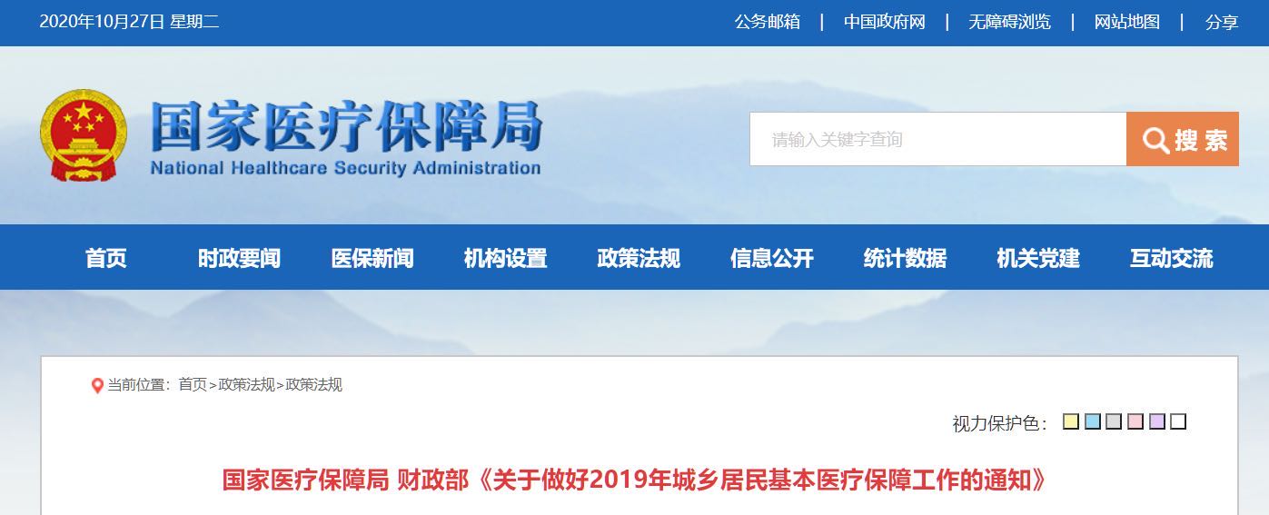早在之前,国家医疗保障局、财政部印发了《关于做好2019年城乡居民基本医疗保障工作的通知》,文件当中有一条规定: