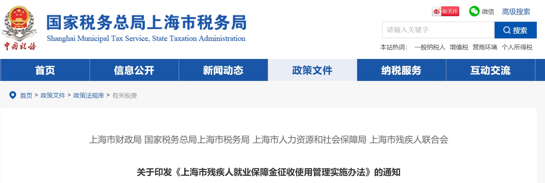 根据《关于印发<上海市残疾人就业保障金征收使用管理实施办法>的通知》(沪财发〔2020〕9号)第九条规定,“保障金由国家税务总局上海市税务局负责征收。”自2020年9月1日起,本市残疾人就业保障金(以下简称保障金)由税务部门征收。