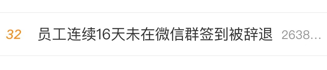 一员工因未按企业要求在APP签到,被以旷工为由辞退。双方因此对簿公堂。一时间,该事件还登上了今天的微博热搜。