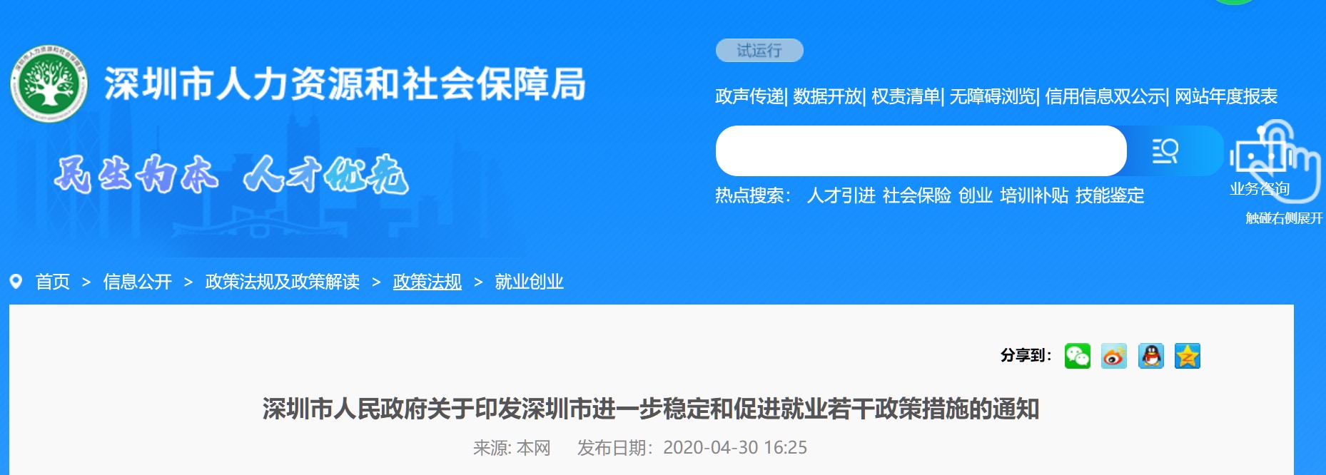 好消息!国家发钱了!4月30日,深圳市人社局发布了《深圳市人民政府关于印发进一步稳定和促进就业若干政策措施的通知》,该通知明确了补贴范围和标准,求职创业补贴标准为每人3000元。